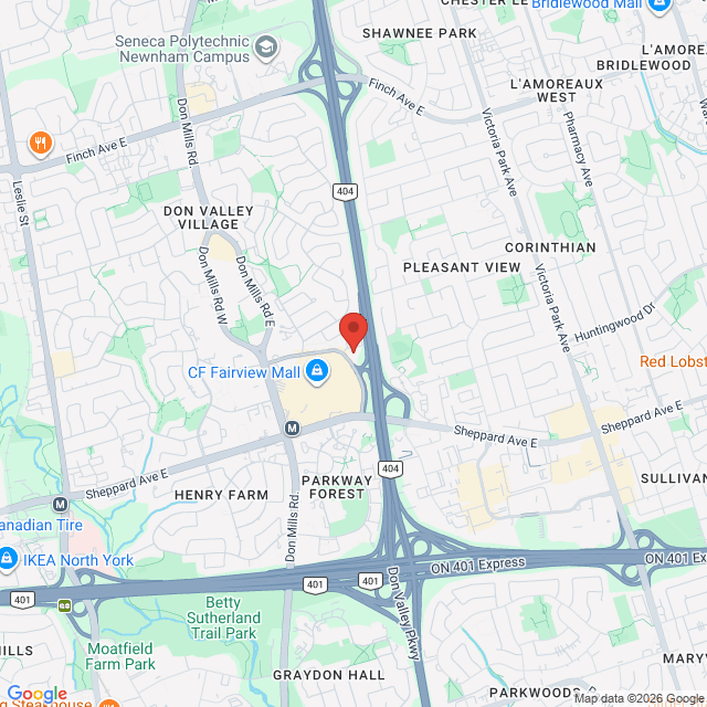 Our office is across from Fairview Mall, near Don Mills subway station.